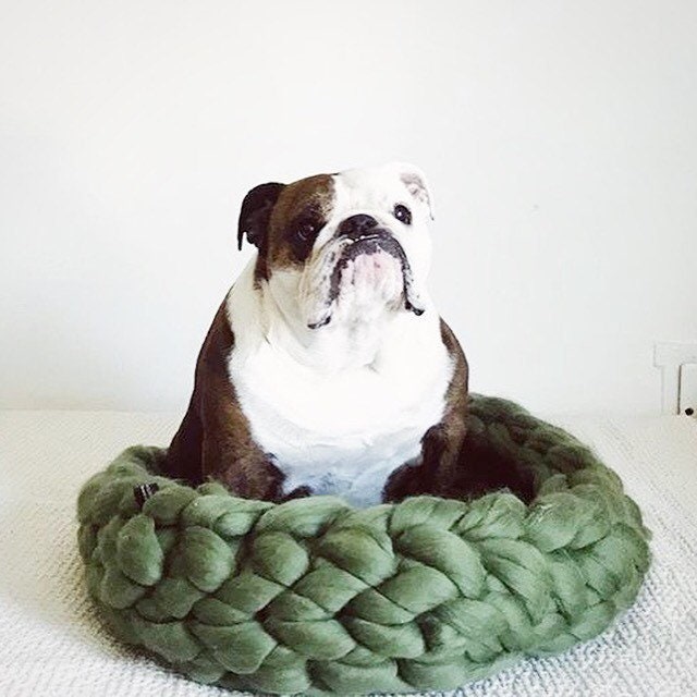 Cat/dog bed, chunky knit pet bedding.